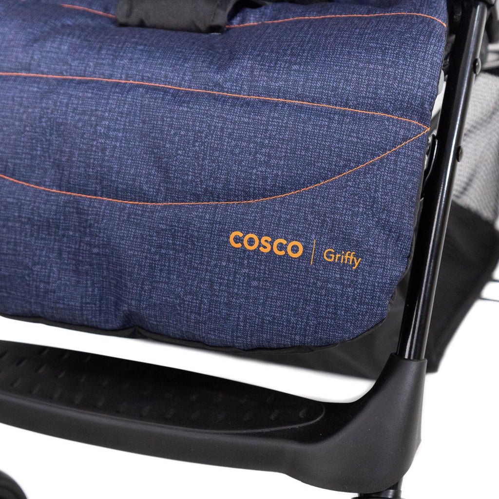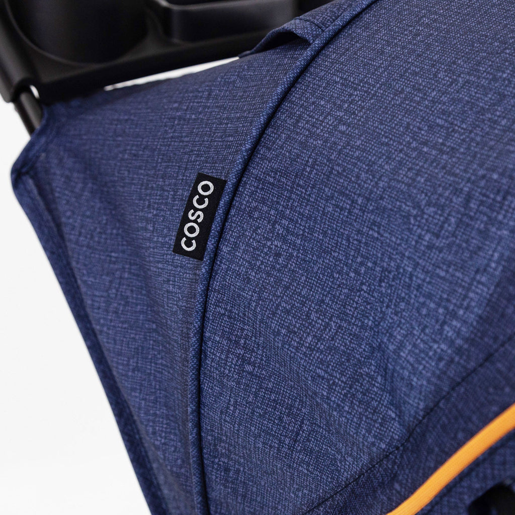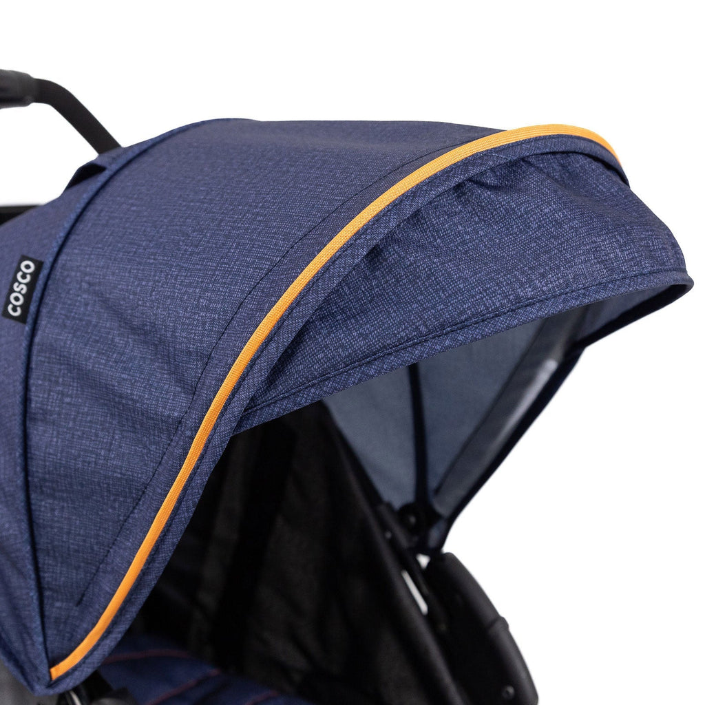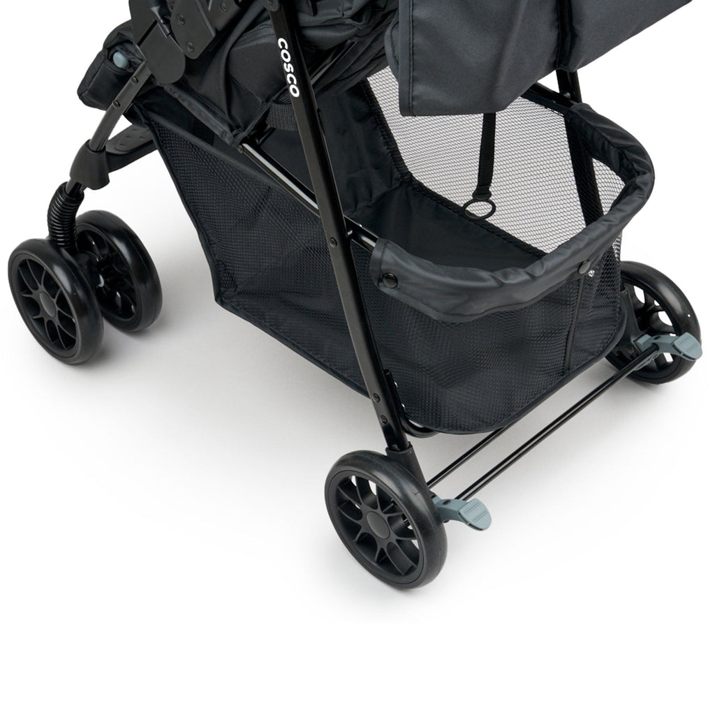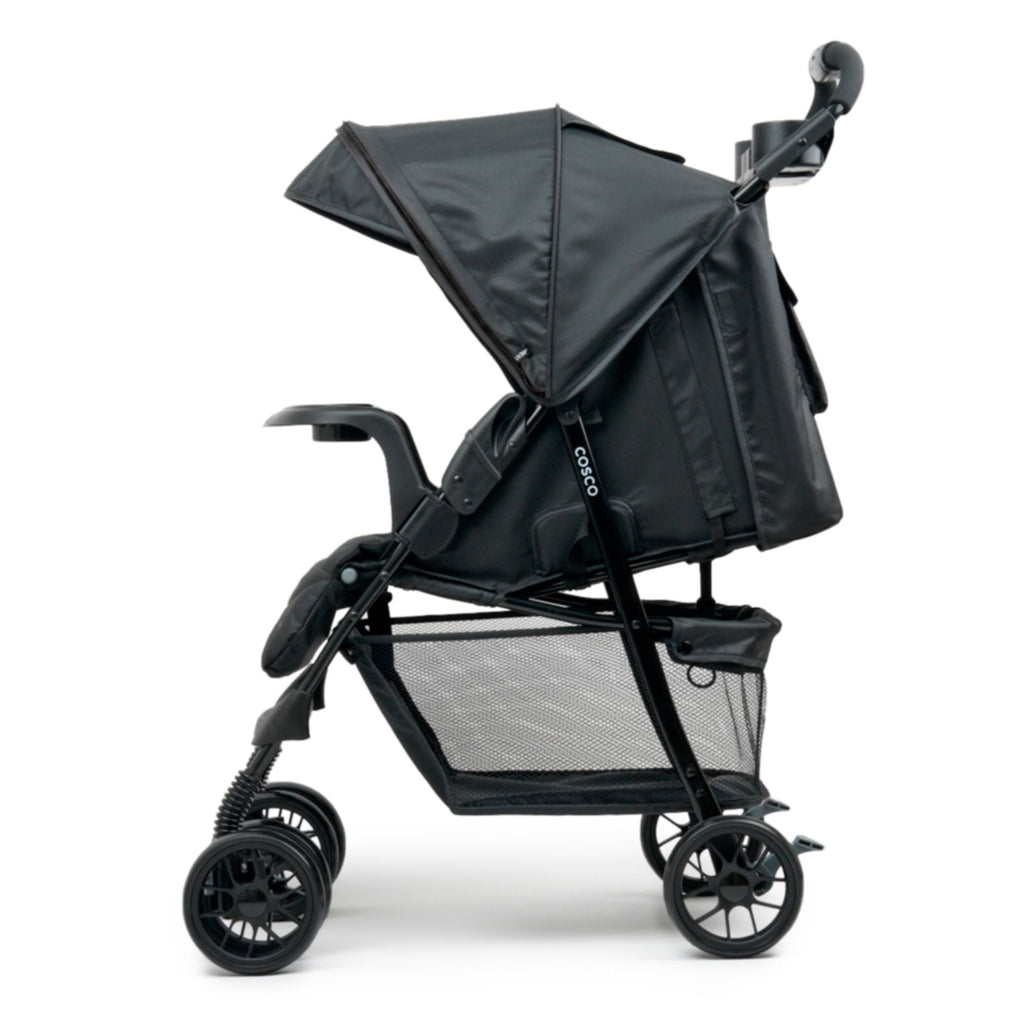 Carrinho de bebê que inclina em diversas posições, capota com UV30+, bandeja para os pais e para a criança e fechamento com uma única mão.