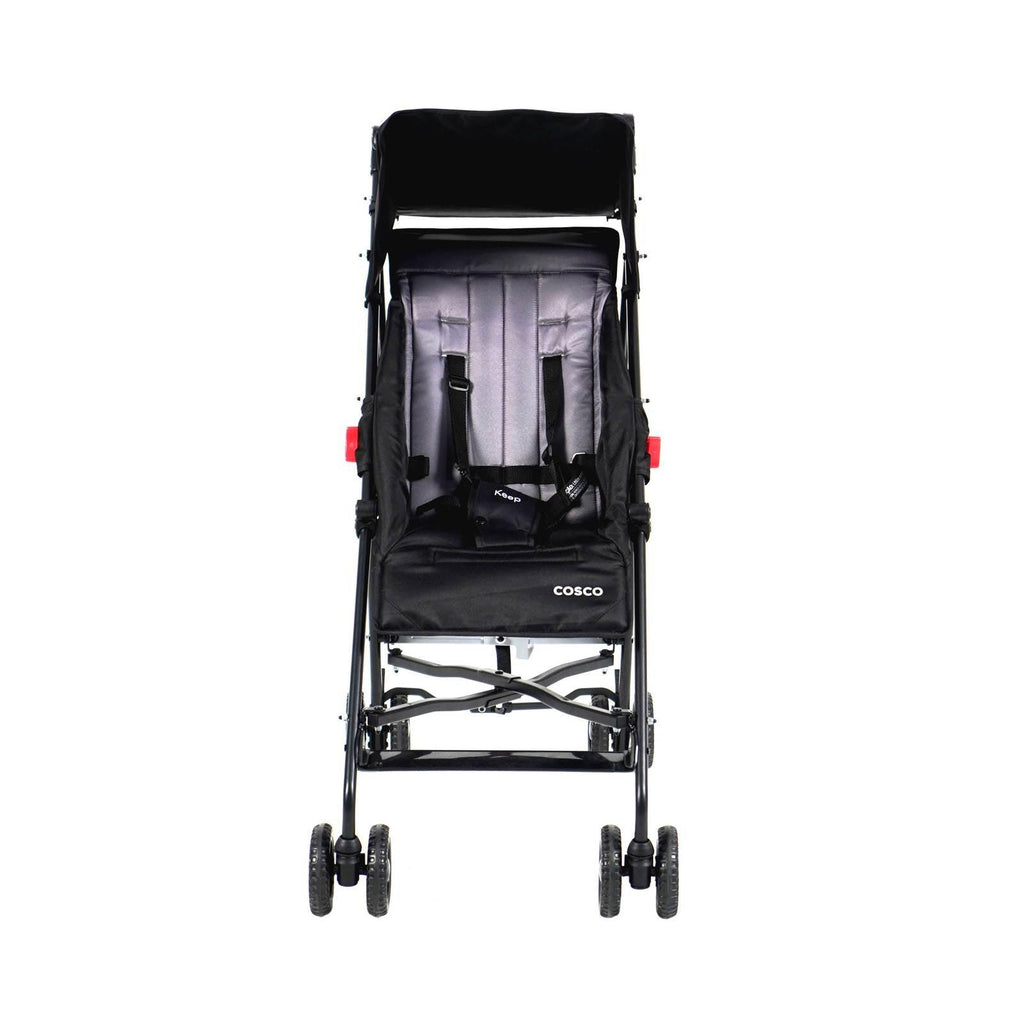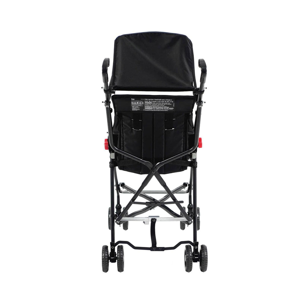 Muito leve, prático e compacto. Assento reclinável, capota, 4 rodas duplas, freio e cinto de 5 pontos com duas alturas. Fechamento guarda-chuva e bolsa de transporte.